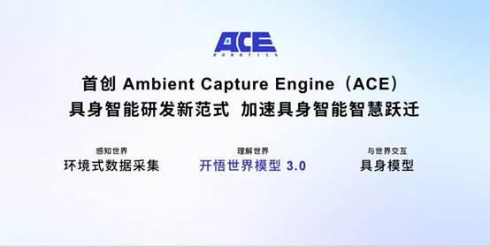 ACE研发范式彻底颠覆传统逻辑,将人类与物理世界的互动规律作为核心研究起点,以环境式数据采集为引擎,构建了一套从“环境式数据采集—开悟世界模型3.0—具身交互”的全链路技术体系。
