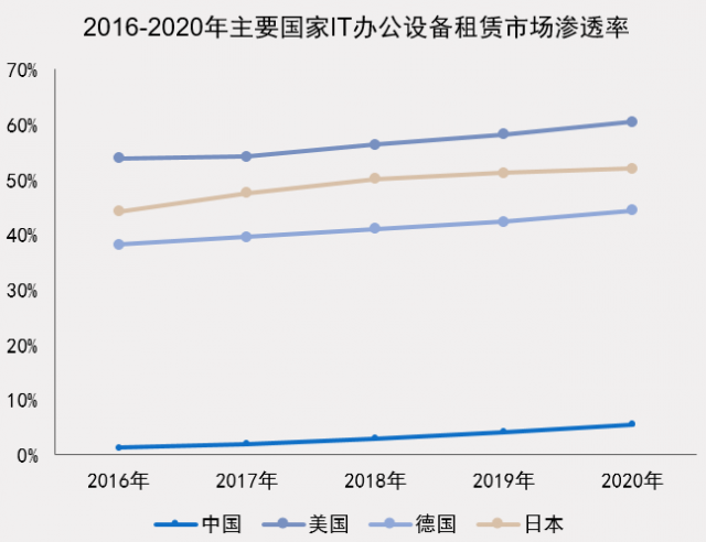 报告指出,轻资产运营模式的经营效果在新型产业和传统产业的建设过程中都颇有成效,成为全球一流企业竞相引入的运营方式。IT办公设备运营可以帮助企业轻资产运营,在欧美等发达国家盛行,部分欧美国家渗透率超过60%。许多的跨国公司如谷歌、沃尔玛、亚马逊等公司都在采取轻资产化运营后,迅速成为行业的领头羊。