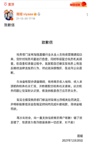 值得注意的是,相比较普通的带货主播,薇娅的第一时间反应更快,道歉信很快就发布,完全像是早就准备好的一样。不仅如此,作为薇娅的老公,以及谦寻控股董事长,董海锋也在事后发布了致歉信。翻看这两封致歉信的内容,大致都是承认自己的错误,完全接受税务部门依法作出的处罚决定,并表态会积极筹措资金在规定时间内完成补缴税款、滞纳金和罚款。