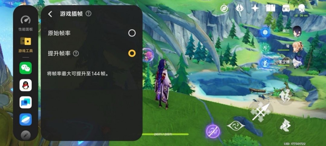 其中超分功能是笔者认为最有用的功能之一,它对于画质的提升相当明显。我们再以《原神》为例,打开游戏中的游戏超分选项,最高可以实现1.5K/900P超分,此时游戏人物角色的脸部以及建筑上的纹理都变得更清晰锐利,精细度的差异有着肉眼可见的效果,整体的画面整体的观感提升了一大截。除此之外,该机还支持了“超分+超帧”同开的使用方式。以原神为例,在开启1.5K超分后,还能同时开启超帧提供最大144帧的超高帧率。