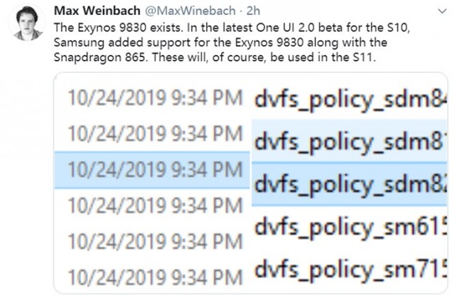 先前XDA的马克斯·温巴赫(Max Weinbach)曾爆料称三星Galaxy S11有望搭载另一款功能强大的移动处理器,今日这位开发者便在Galaxy S10 One UI 2.0 Beta中发现了三星新增了对Exynos 9830和骁龙865的支持,这也验证了他之前的爆料。