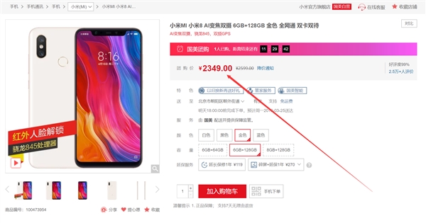 【TechWeb】伴随着小米9的上市,小米前代旗舰手机产品小米8性价比则更显突出。今日,国米商城显示,小米8配置为6GB+128GB的版本,售价已经跌至2349元,比起首发2999元的价格要便宜了650元之多。