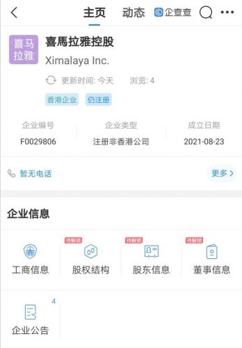 此前,企查查香港企业监测数据显示,喜马拉雅于8月23日在中国香港注册喜马拉雅控股公司。有消息称,喜马拉雅或将在港股上市。