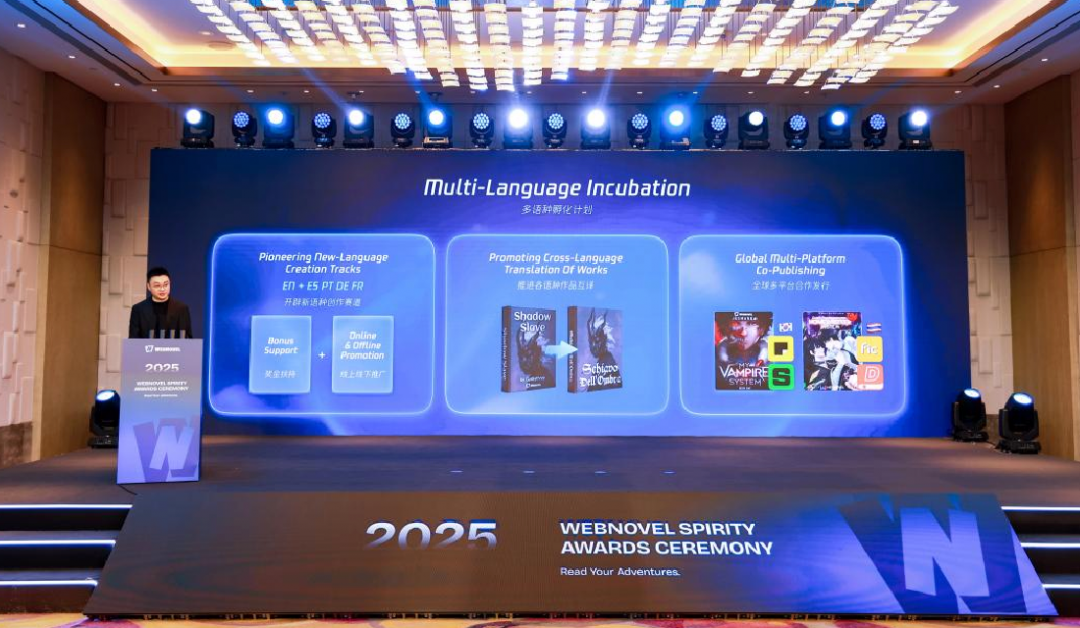 在此背景下,起点国际宣布将于2026年启动“多语种孵化计划”,WebNovel将在英语赛道成熟布局的基础上,开辟西班牙语、葡萄牙语、德语、法语等多语种创作赛道,并配套语种专属奖金扶持机制、线上线下推广方案等。