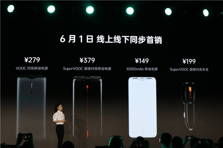 OPPO“闪充家族”将于6月1日线上线下同步发售:包含VOOC闪充移动电源,售价279元;SuperVOOC超级闪充移动电源,售价379元;SuperVOOC超级闪充车充,售价199元;OPPO 10000 mAh移动电源,售价149元。