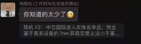 近日网络上流传了几段微信群聊的对话,在一个半导体行业500人的微信群内,一位被称为“中芯国际光刻胶负责人”的杨晓松直接在群内表示,“别扯ArF,没一家能看的,各个都不敢来见我。”在群内的方正证券电子首席分析师陈杭在群里怼了杨晓松,并称“你算老几”。