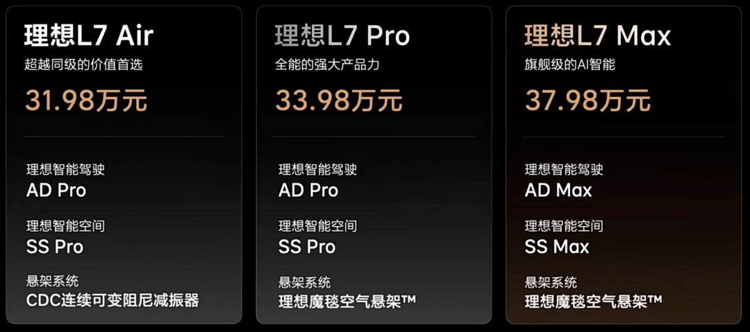 L7 这款车其实是 L8 发布会上的 One more thing,其中 Pro 和 Max 的配置和价格当时就已经公布。