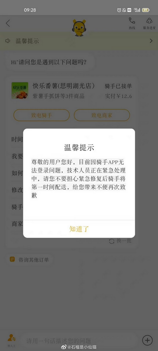 美团骑手的App崩了,能点餐但是无人送餐?快讯