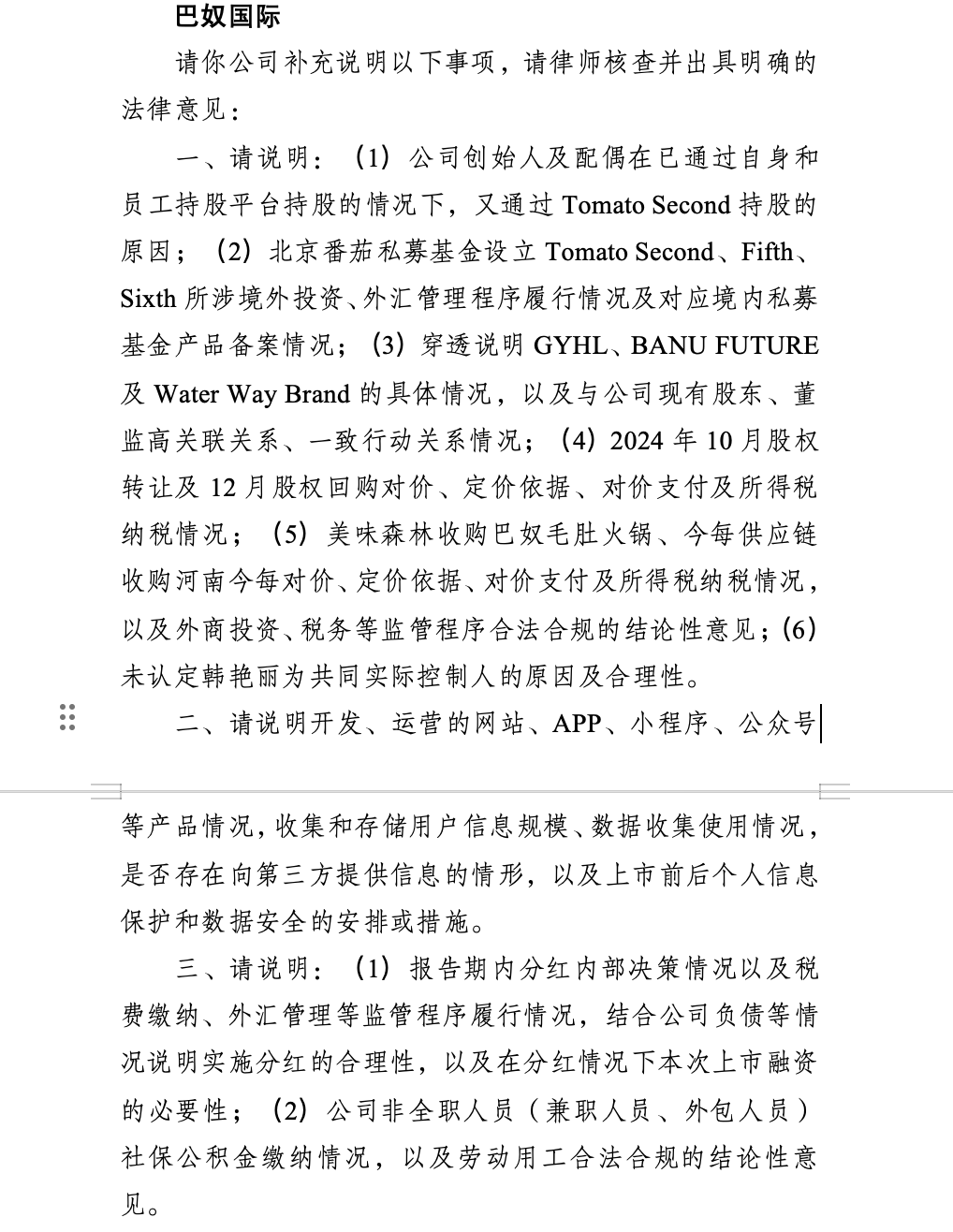 证监会对此提出了尖锐的质疑:在创始人已通过自身和员工持股平台持股的情况下,为何还要引入境外私募基金实体间接持股?这背后是否隐藏着利益输送、避税或其他不可告人的目的?尽管巴奴在招股书中解释称,多层次的股权架构主要是为了满足不同阶段的融资需求和股权激励安排,但这样的解释显然难以完全打消监管层和市场的疑虑。