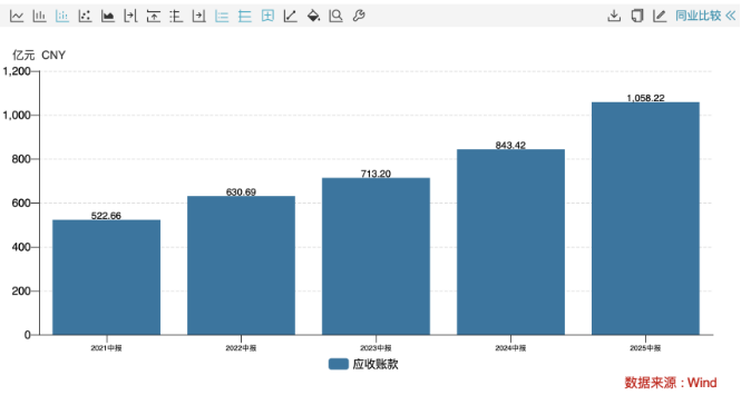 需要指出的是,近年来,随着政企业务营收规模扩大,公司的应收账款持续攀升。由于公司的政企业务的项目付款存在周期特点,政企应收账款年中回收进度相对较慢。2025年上半年,中国移动的应收账款为1058亿元,同比增长25.47%,创近五年新高。