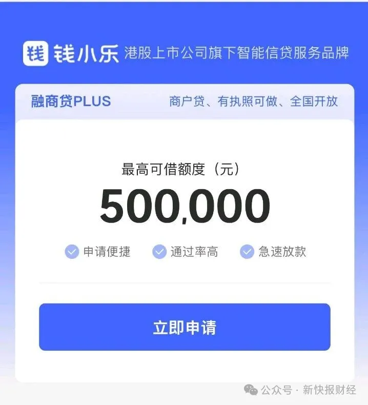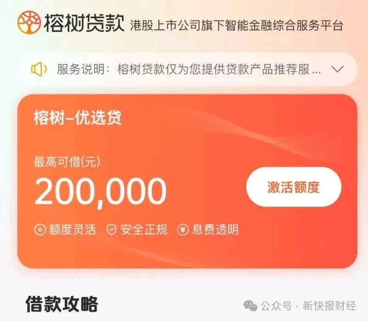 产品信息显示,钱小乐为港股上市公司旗下智能信贷服务品牌,最高可借额度50万元,通过率高,急速放款。引人注意的是,钱小乐贷款营销页面未公示贷款利率,榕树贷款产品页面同样未展示贷款利率。