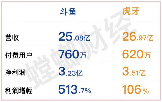 而在利润方面,虎牙净利润虽高于斗鱼,但斗鱼的利润增幅表现却强于虎牙:虎牙净利润为人民币3.51亿元,同比增长106%;斗鱼实现净利润3.23亿元,同比增长513.7%。