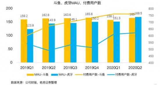 从2020年Q2财报来看,虎牙的整体营收与净利润小幅领先于斗鱼,而斗鱼的利润增幅和付费用户要高于虎牙。