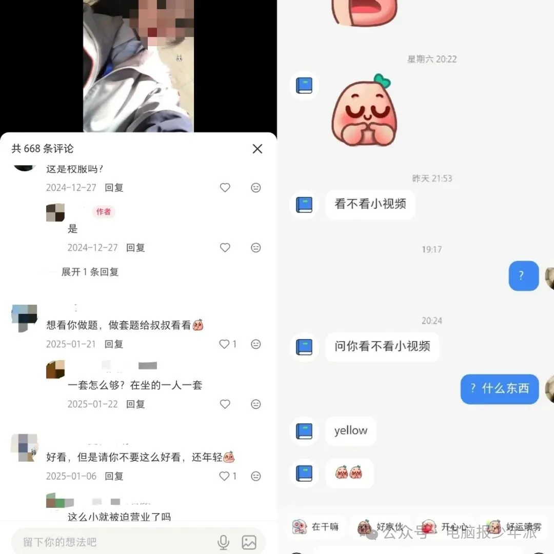 未成年评论区和私信收到的骚扰暗示