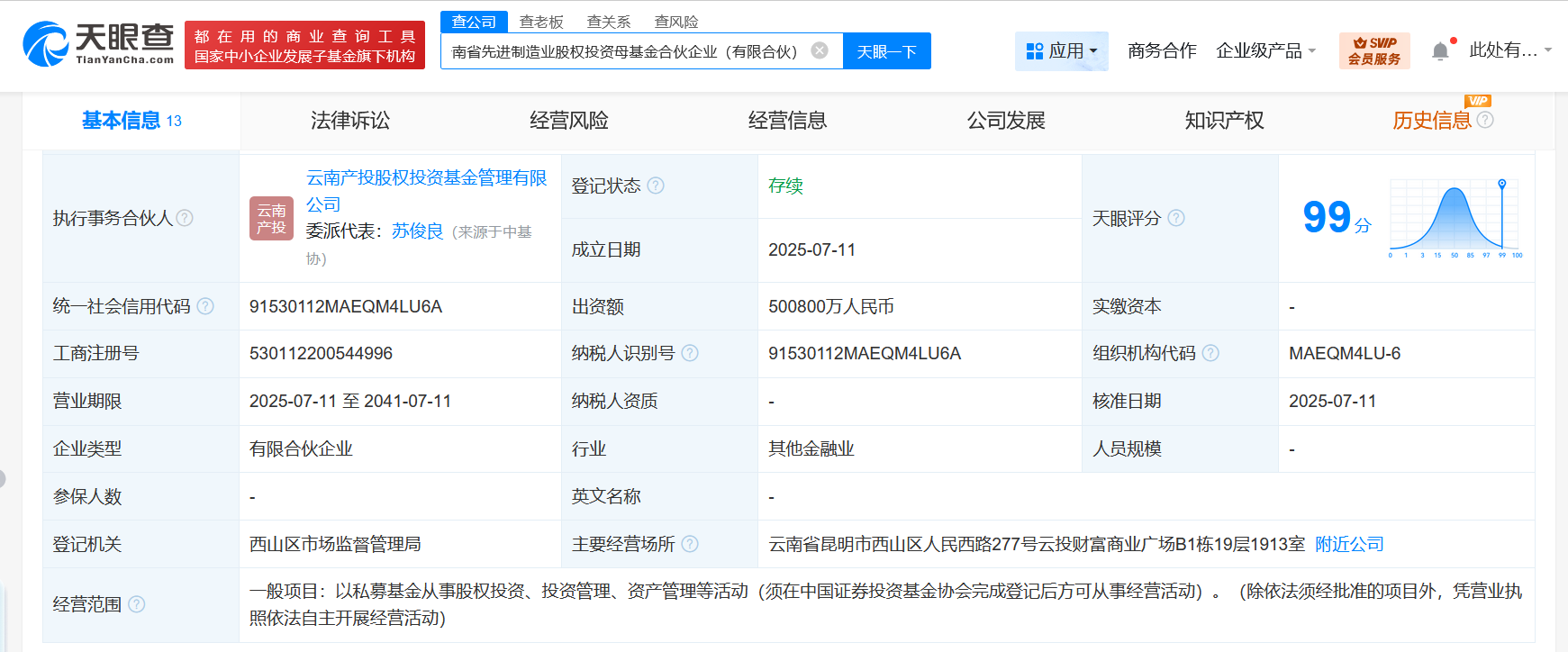 天眼查App显示,近日,云南省先进制造业股权投资母基金合伙企业(有限合伙)成立,执行事务合伙人为云南产投股权投资基金管理有限公司,出资额50.08亿人民币,经营范围为以私募基金从事股权投资、投资管理、资产管理等活动。合伙人信息显示,该基金由云南省产业投资基金有限责任公司、云南省重点产业投资基金合伙企业(有限合伙)、云南产投股权投资基金管理有限公司共同出资。