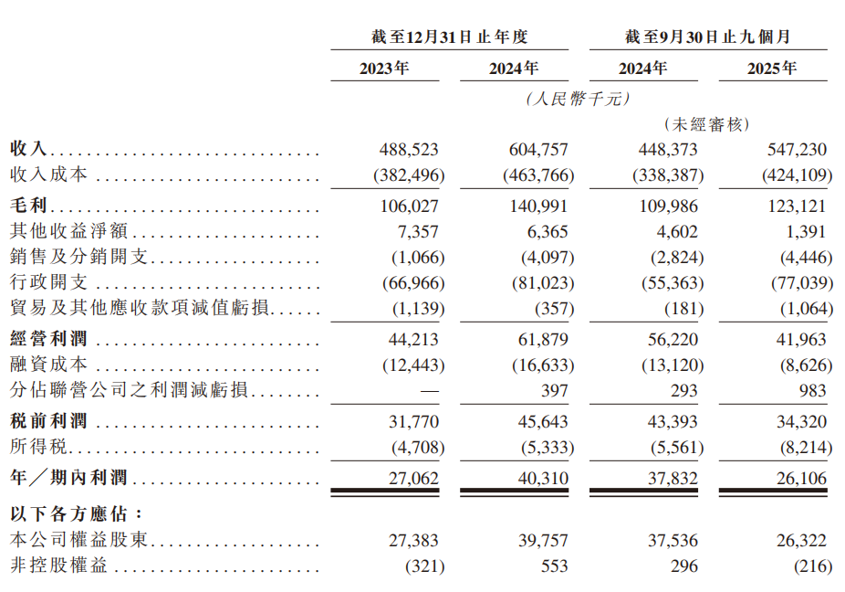 近年来,锦欣康养的营收保持稳步增长态势,但净利润却呈剧烈波动,2025年前三季度更是陷入“增收不增利”的尴尬境地。招股书显示,2023年公司实现营收4.89亿元,2024年同比增长23.8%至6.05亿元,2025年前三季度营收进一步同比增长22%至5.47亿元,三年间营收规模持续扩大。