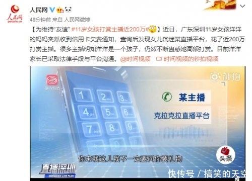 近日,包括人民网在内的多家媒体报道了一封出自深圳11岁小女孩洋洋所写的道歉信,起因在于这个小女孩打赏主播或者给主播转账共消费了近200万元!洋洋家属称,从聊天记录来看,这些主播分明知道孩子只有11岁。会对洋洋说“哥哥很困难,你帮帮哥哥”“哥哥没人宠爱”之类的话。更有甚至一名主播还让洋洋跟他一起自残,“你划一刀,我划十刀。”