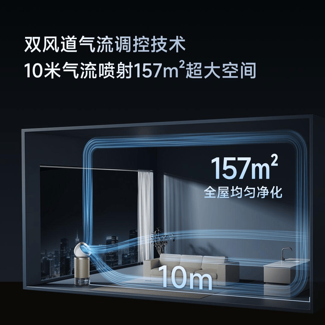此外,追觅生活环境电器还将展示另外两项首创技术:其一为智能双风道系统,借鉴航空引擎流体力学,能智能识别污染并自动切换最远10米射流与广域扩散模式,灵活适配多元场景,单机覆盖面积高达157㎡,为大空间带来高效均匀的净化体验;其二为AI感知动态追踪技术,内置毫米波雷达,支持5米、120°广角侦测,用户靠近即自动开机,并实时追踪定位、定向输送洁净空气,真正做到“风随人动,净享同步”。