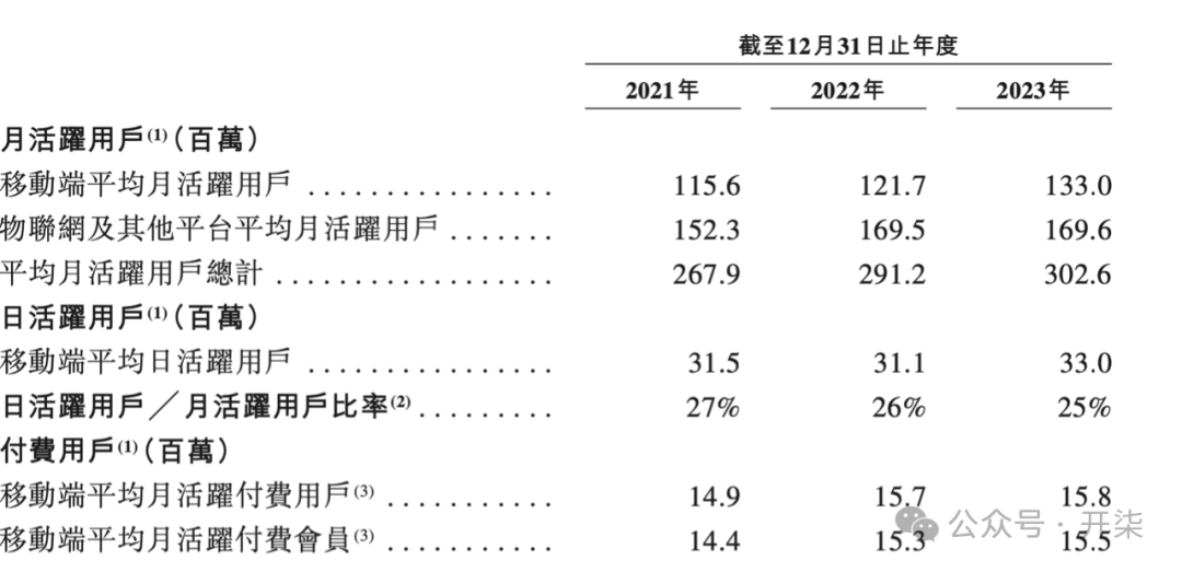 当然,中间有几个数字还是不太好看的。比如,日活跃用户在月活用户中的占比,逐年下滑,表明用户粘度的下降。再比如,日活用户的日均收听时长也在2023年出现了明显的下降,比22年下降了12分钟。与此同时,付费率也在2023年出现了下滑。