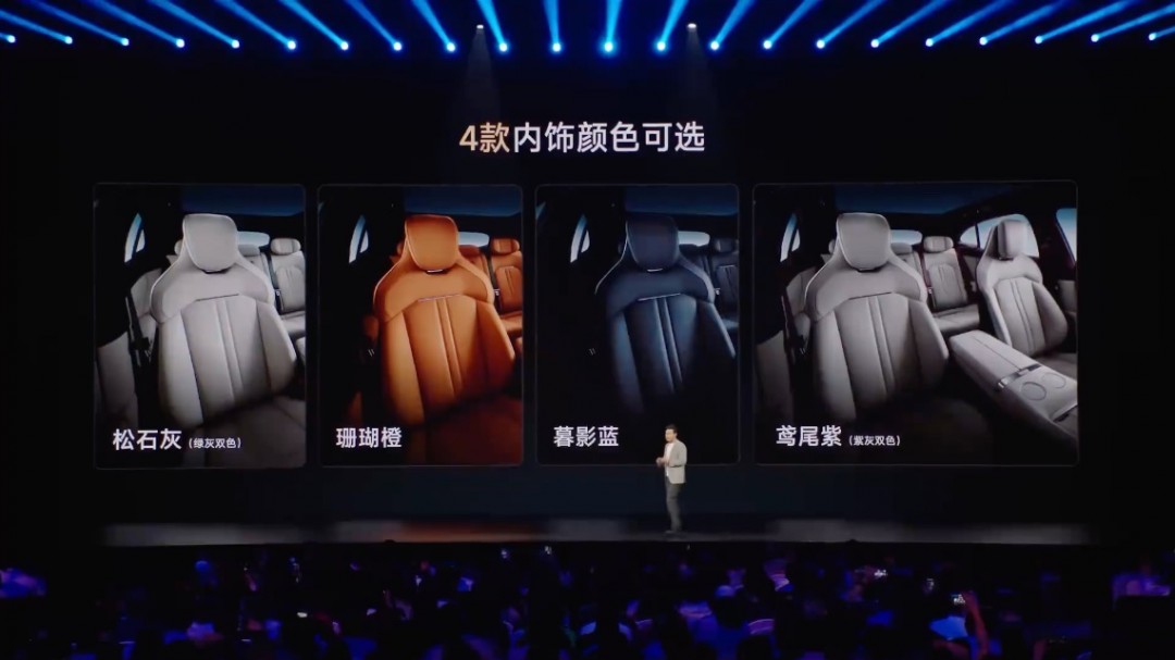 颜色方面,本次小米YU7 共发布了4款内饰颜色,包括已发布的松石灰、珊瑚橙、暮影蓝,以及新增的鸢尾紫,搭配外观车色可以搭配出非常多种选择。