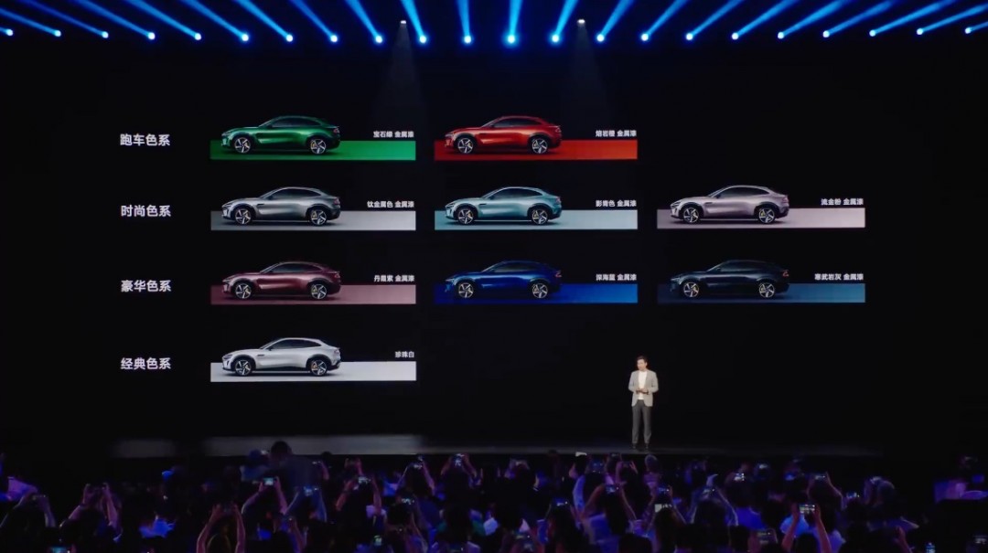 配色方面,这次小米依然充分考虑到了女性消费者需求,为YU7准备了9种车身颜色,分别是寒武岩灰、熔岩橙、钛金属色、宝石绿、珍珠白、深海蓝、丹霞紫、影青色、流金粉。