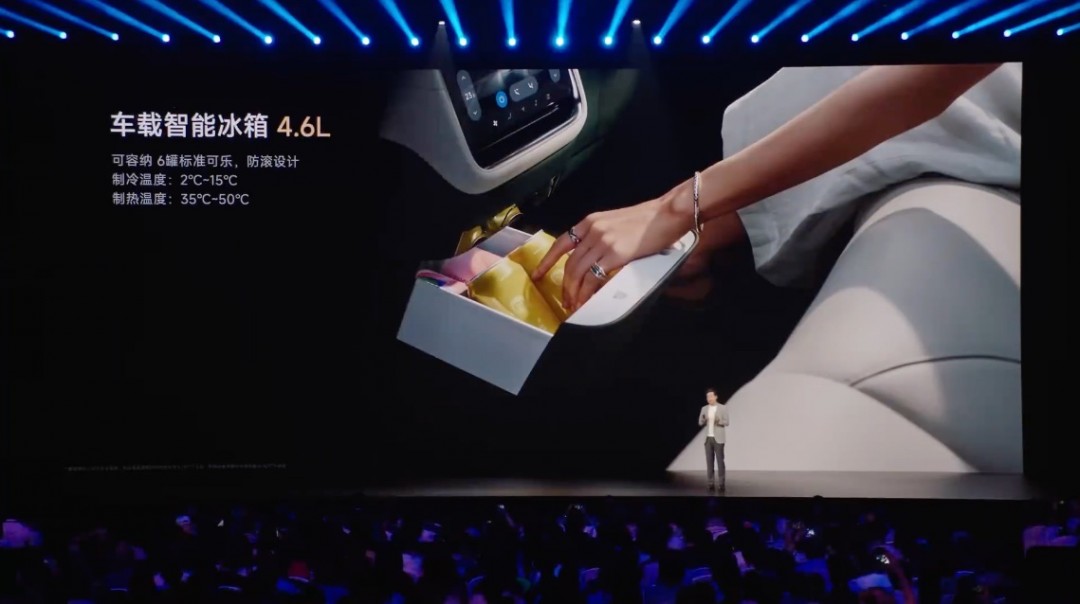 在舒适性上,全系标配静音夹层玻璃,Max版本配置了智能调光天幕,在38℃气温下暴晒1.5小时后,车内温度较加装物理遮阳帘的Model Y更低。此外,全系还标配了4.6 L车载智能冰箱,可容纳 6 听标准可乐,可制冷、可制热。