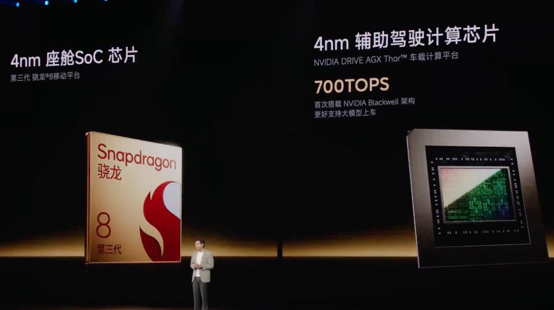 智驾上小米是吃过亏的,前段时间的那个交通事故,让小米遭遇到了很大的舆论风波。所以这次YU7全部标配了激光雷达,同时还搭载了英伟达最新的Thor芯片,拥有700TOPS算力,并使用了最新1000万Clips版本的小米端到端辅助驾驶HAD。