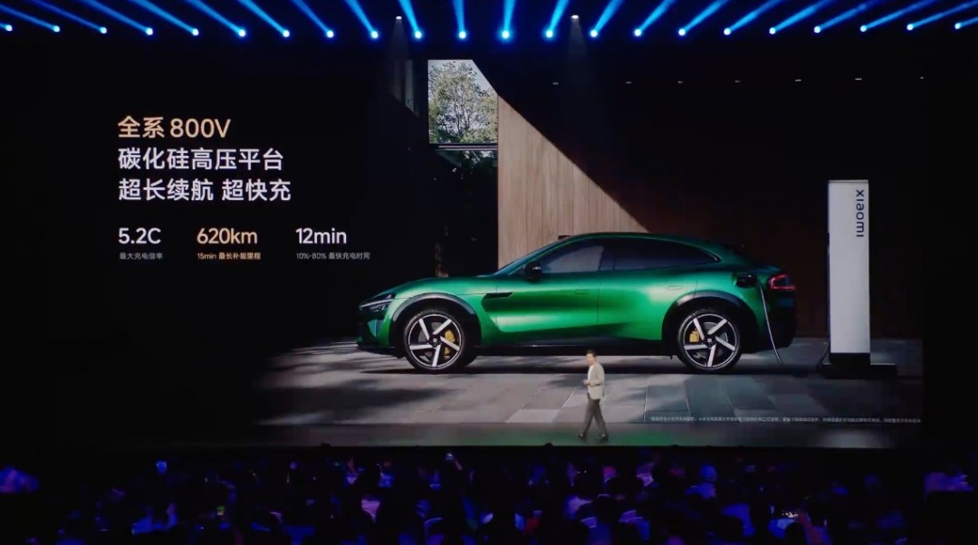 此外,小米YU7全系搭载800V碳化硅高压平台,峰值电压897V。最大充电倍率达到5.2C,实现10% - 80% 充电只需12分钟,15分钟最快补能620km。(萧健)