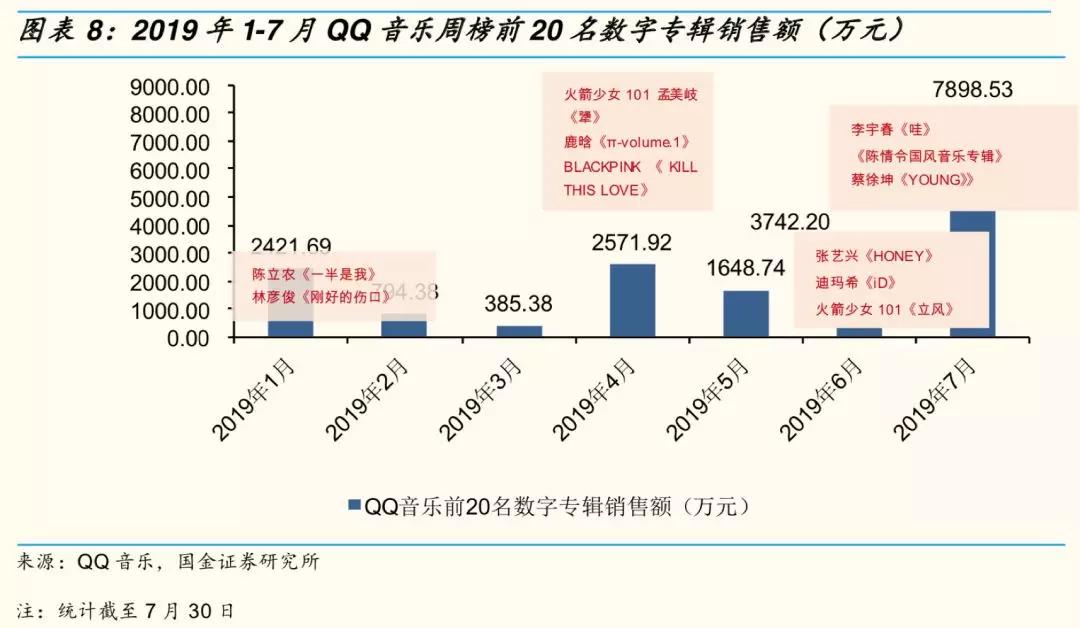 比如蔡徐坤《YOUNG》成为QQ音乐首张销售额突破3000万的数字专辑;腾讯音乐在QQ音乐、酷狗音乐、酷我音乐、全民K歌、酷狗直播五大平台全程同步直播TFBOYS告白The Fever六周年演唱会。
