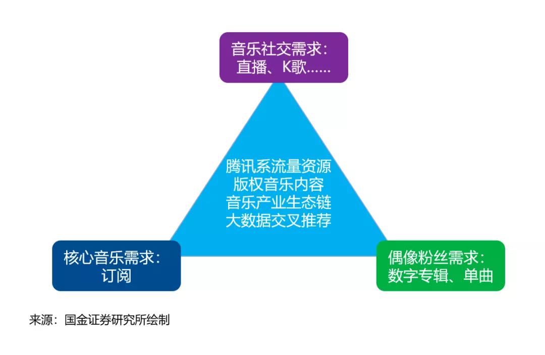 国金证券今年5月在对腾讯音乐的首次评级之中,给出了“买入”指标。在分析师看来,腾讯音乐构筑了复杂而稳固的“三位一体”。
