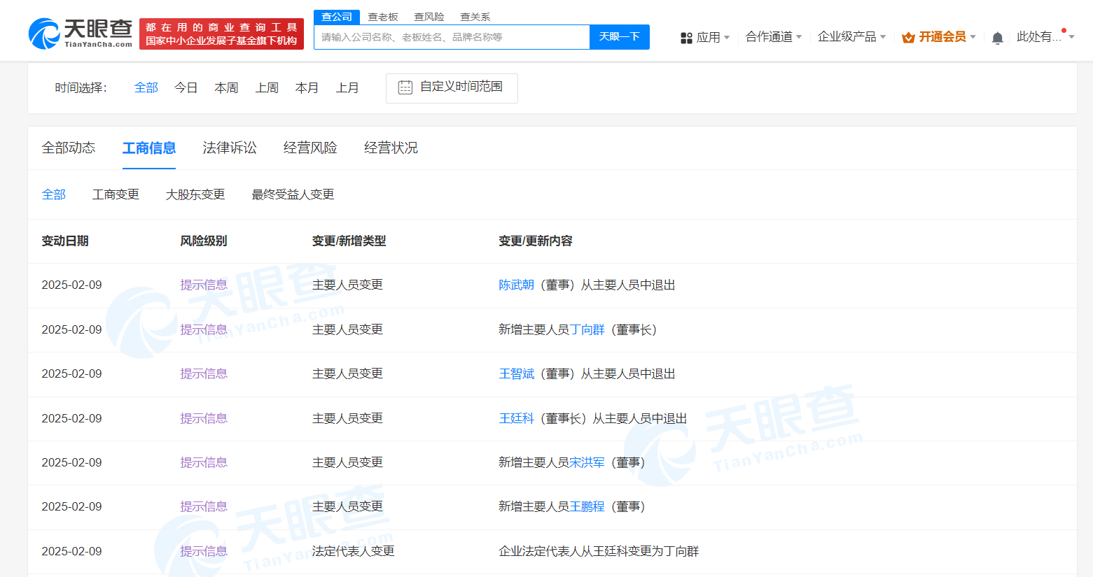 天眼查App显示,近日,中国人保(601319)发生工商变更,王廷科卸任法定代表人、董事长,由丁向群接任,同时,多位主要人员也发生变更。