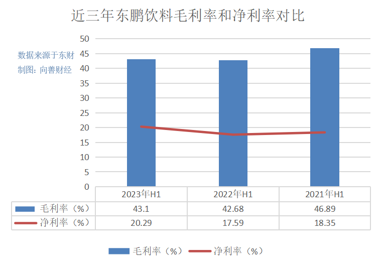 至于净利率方面,报告期内,东鹏饮料的净利率为20.29%,同样分别高于2021年、2022年同期18.35%、17.59%的净利率表现。