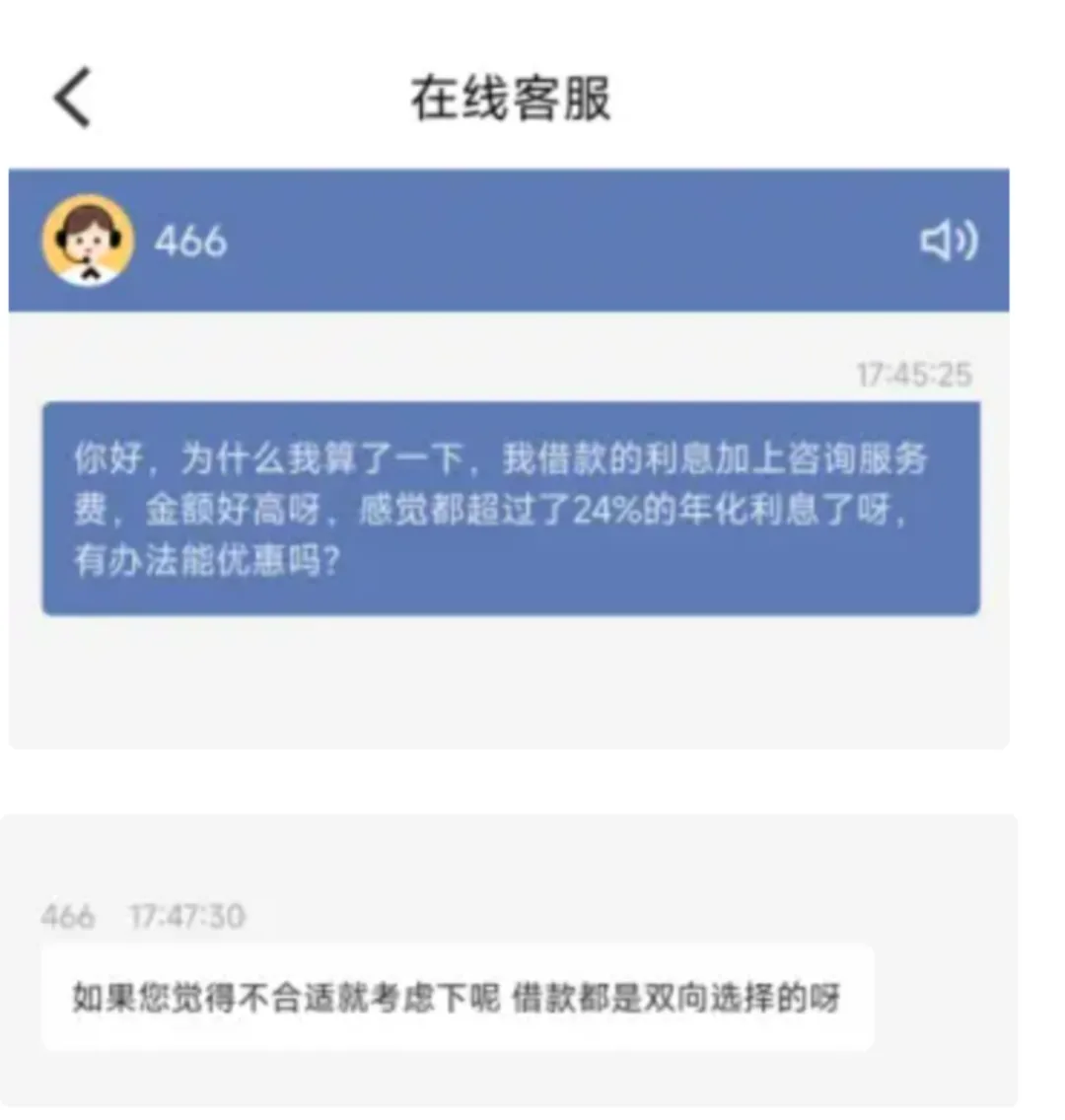 去年11月,据凤凰网财经《银行财眼》报道,在该平台借款需先上传个人身份证信息,而针对客户投诉的高额咨询费等问题,客服称该费用为融担咨询服务,如果觉得不合适可再考虑下。