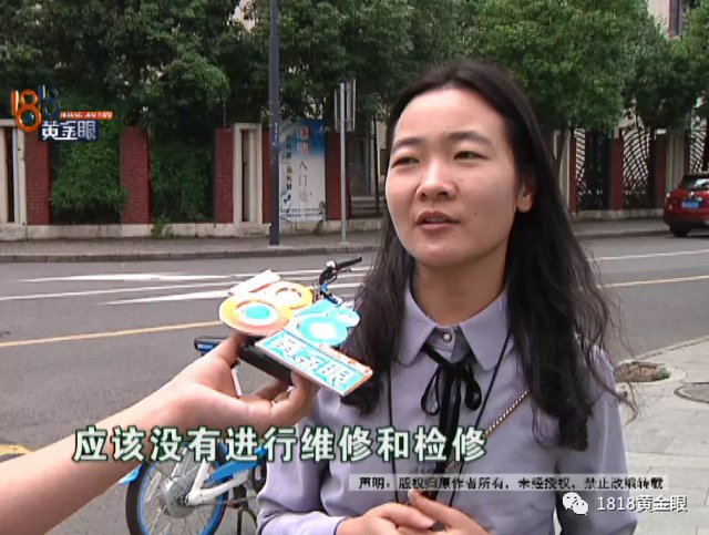 哈啰单车浙江一区公关部张经理:" 车是常年放在外面的嘛,它的异常的一个发动,或者一些什么,但是我们每辆车,都是有检测的,这个不能作为,她当时要求赔偿的证据。"