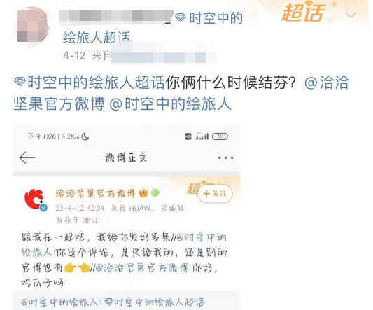 在时空中的绘旅人超话,就有该游戏的粉丝主动艾特洽洽,催促双方尽快达成合作。