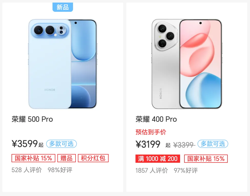 荣耀 500 及 400 系列