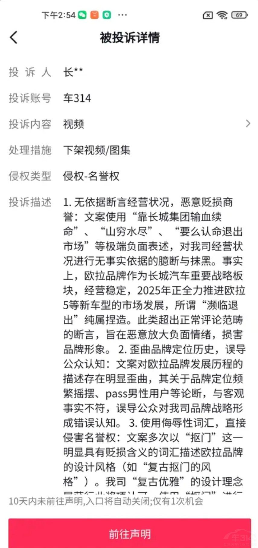 这个投诉真的挺2的,称我们的视频歪曲欧拉品牌定位历史,说我们PASS男性用户的论点是与客观事实不符?