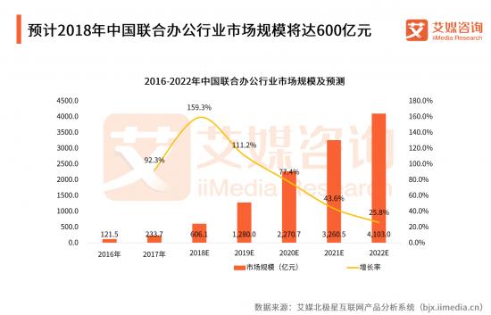 据中商产业研究院数据库显示,截止到2018年6月底,中国共享办公平台数超过300家,布局网点数超6000多个,总体运营面积达1200万平方米,提供工位数达200万个。而根据艾煤咨询发布的《2018中国联合办公行业监测报告》,2016—2022年,中国联合办公行业市场规模不断增长,增长率达159.3%。