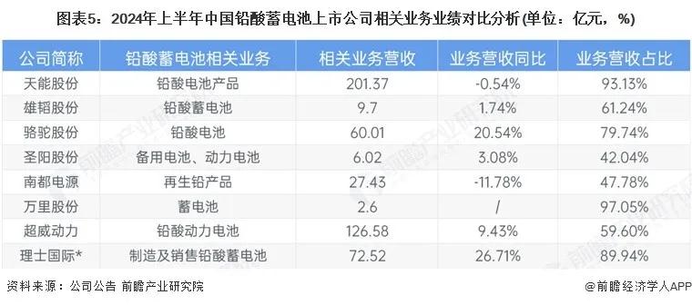 数据显示,2024年上半年,天能股份以201.37亿元的铅酸电池业务营收位居行业第一,超威动力紧随其后,铅酸动力电池业务营收达126.58亿元。