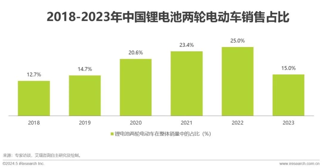 2023年,两轮电动车中锂电车的渗透率大幅下跌,这是因为受上游锂电池原材料价格波动太大的影响,锂电车价格一涨,销量就容易下滑,这也导致下游两轮电动车品牌对“铅改锂”的态度不再积极。