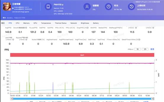 实际游戏体验中,OPPO K15 Pro 的表现堪称惊艳。在《王者荣耀》中,该机支持极致 144fps 帧率模式,通过 PerfDog 测试,一局排位战的平均帧率达到 143.9fps 满帧,即使在多人团战的高负载场景下,帧率也无明显波动,操作丝滑无卡顿;连续游戏半小时,手机正面最高温度仅 35.3℃,背面最高 35.9℃,手感温热不烫手。