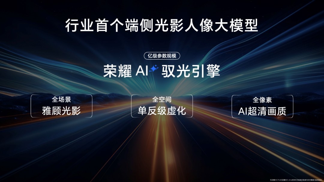 荣耀300系列创新推出荣耀AI驭光引擎。通过AI深度学习技术,荣耀300系列模拟雅顾在各种光线条件下的光影表现,让用户无论在室内室外、白天夜晚、侧光背光条件下,都能轻松拍摄出具有专业水准的雅顾光影人像大片。同时,荣耀300系列带来了全空间虚化解决方案,实现了安卓平台上超强的单反级前景虚化、单反级渐进式虚化、焦内焦外柔美虚化及虚化后的编辑功能,为用户提供从拍照直出到后期修图的全链路单反级虚化体验,让每一次的人像拍摄都更加专业。
