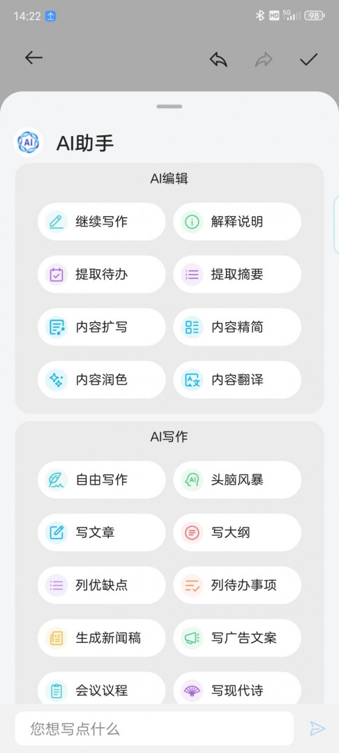 努比亚Z60S Pro支持AI 记事本功能,可随时对记事本内容进行翻译、关键点摘要和智能排版等,提升用户记事的使用效率。