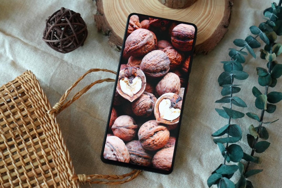 手机侧边经典的红色电源按键表面附上了交错的纹理,上面是黑色的音量调节按键,最顶部集成了相机快捷调用按键,调用功能可自定义。