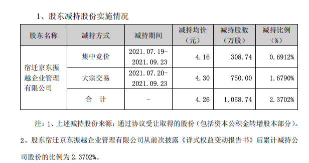 截至本公告披露日,截至本公告披露日,公司于近日收到宿迁京东振越企业管理有限公司《减持计划股份减持时间过半的告知函》。