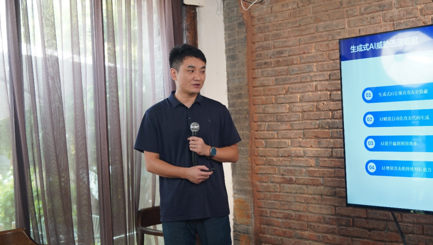 此外,围绕热议的生成式AI威胁话题,王剑桥与胡钢伟也在会上分享了防范建议。