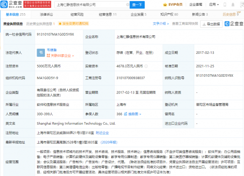 【TechWeb.】企查查APP显示,11月25日,上海仁静信息技术有限公司发生工商变更,公司经营范围新增第二类增值电信业务;出版物零售;广播电视节目制作经营;网络文化经营等。