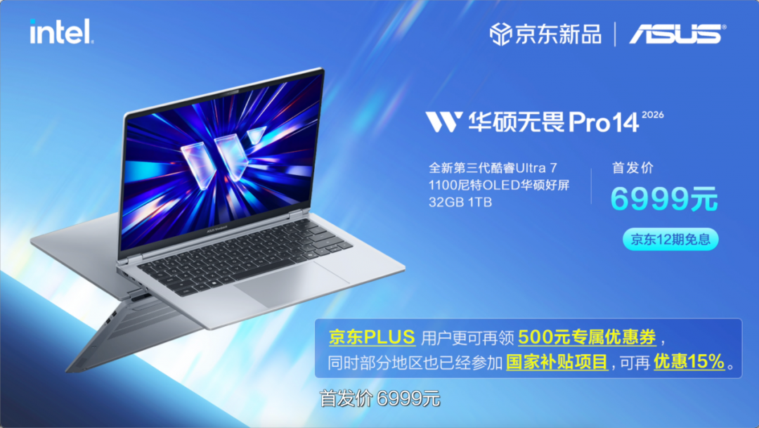 华硕无畏Pro14 2026,首发6999元。