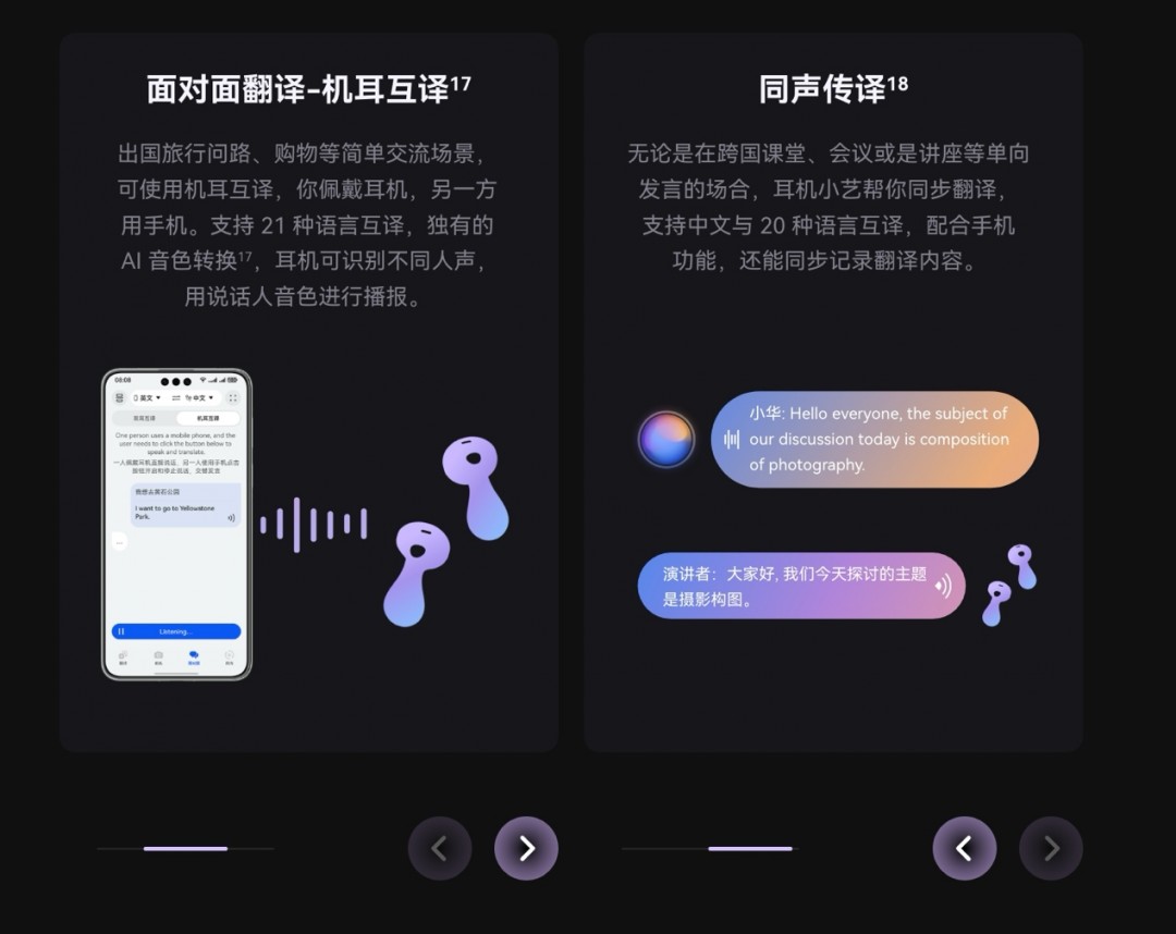 在全球化的今天,跨语言交流变得越来越频繁。华为FreeBuds 6玫瑰金在面对面翻译功能上进行了重大升级,新增了双耳互译功能。以往的机耳互译模式,需要一人佩戴耳机说话,另一人看手机的翻译文字并借助手机拾音进行翻译,而现在的双耳互译功能则更加便捷高效。