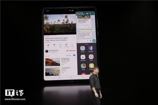 当把手机展开式,三星与谷歌合作优化应用程序,首先亮相的就是三星Galaxy Fold可折叠屏手机。